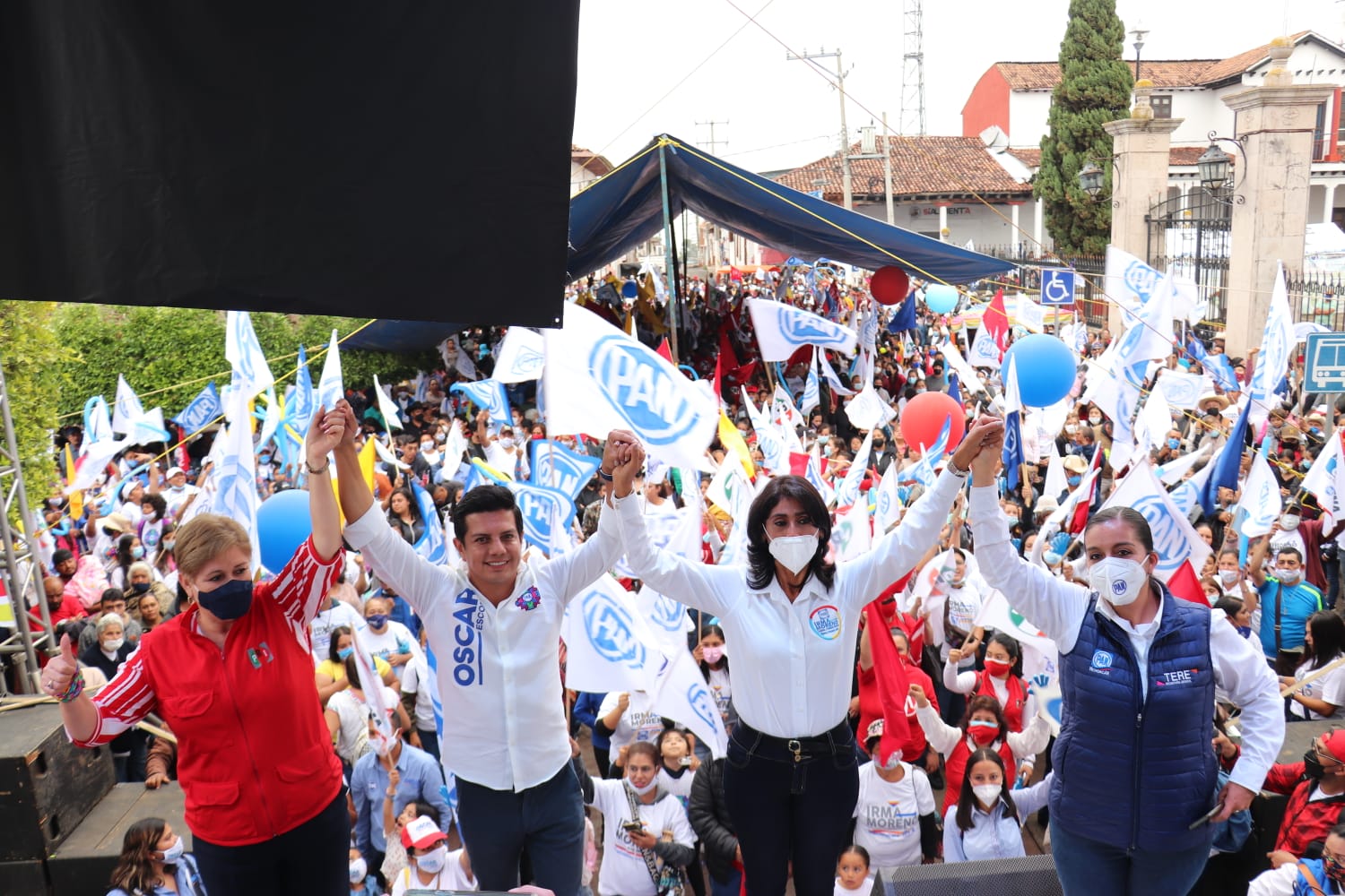 “Esta planilla que encabezas Irma y el trabajo que realizará Oscar, van a rendir frutos el próximo 6 de junio. Sólo pedimos que estés respaldo y apoyo se manifieste en las urnas, vamos a salir a votar para que los buenos gobiernos sigan en este municipio”.