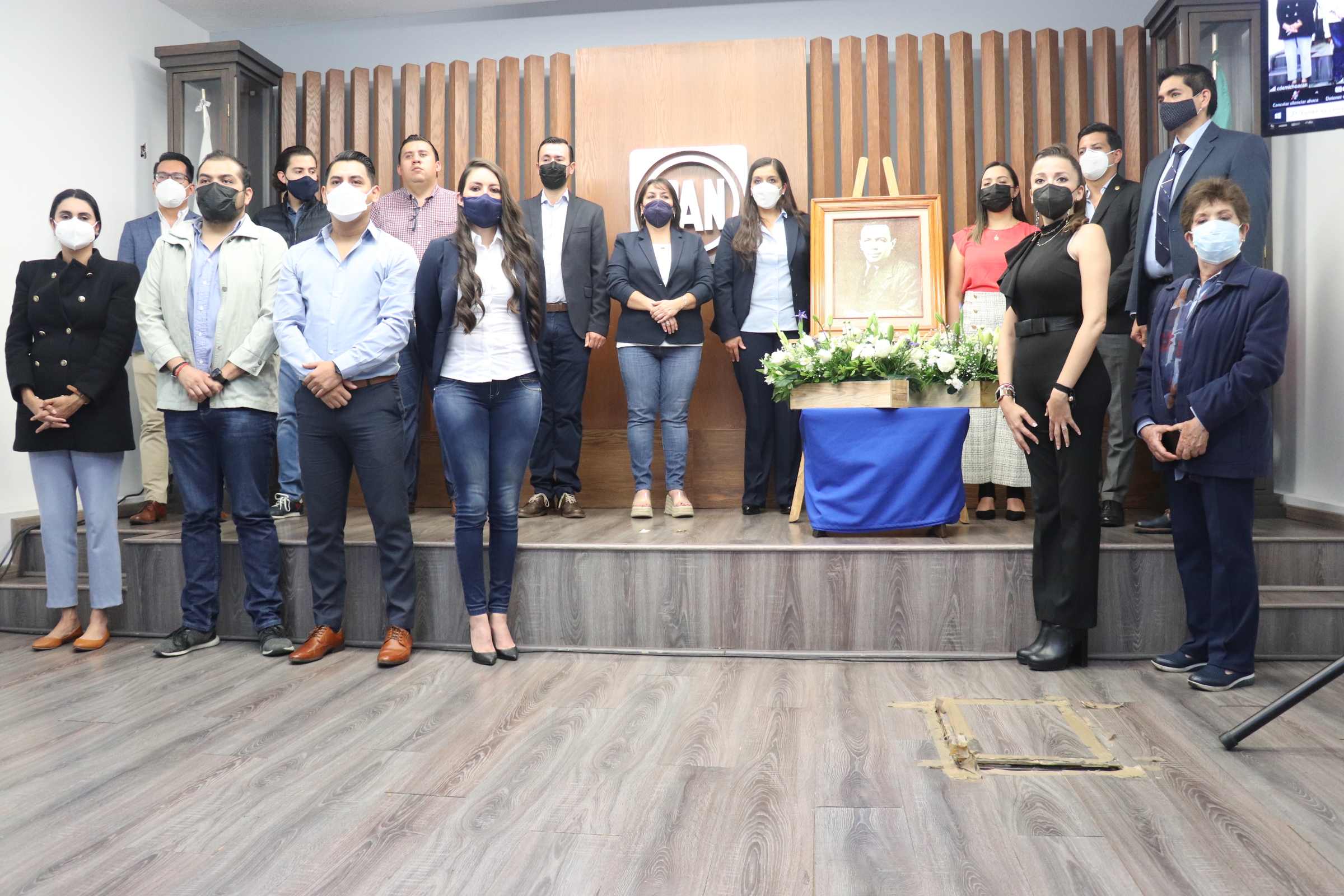 Los presentes colocaron una ofrenda floral y montaron guardia de honor en torno al retrato de Manuel Gómez Morin, miembro fundador de Acción Nacional en 1939.