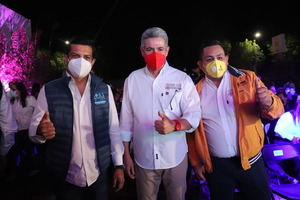 Los dirigentes de los tres partidos políticos que integran el Equipo por Michoacán, Oscar